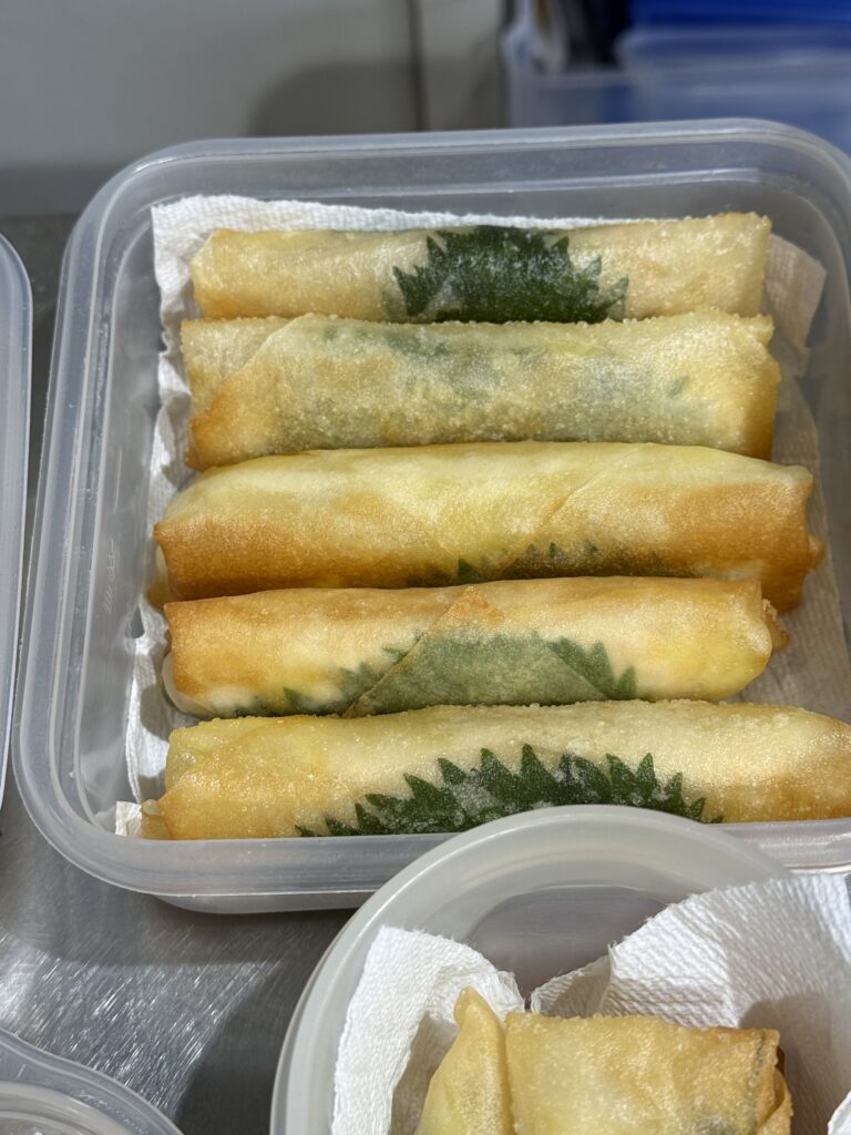 この日は「春巻き」中身を簡単にして、巻いて揚げ焼き。ささみと大葉とチーズです。